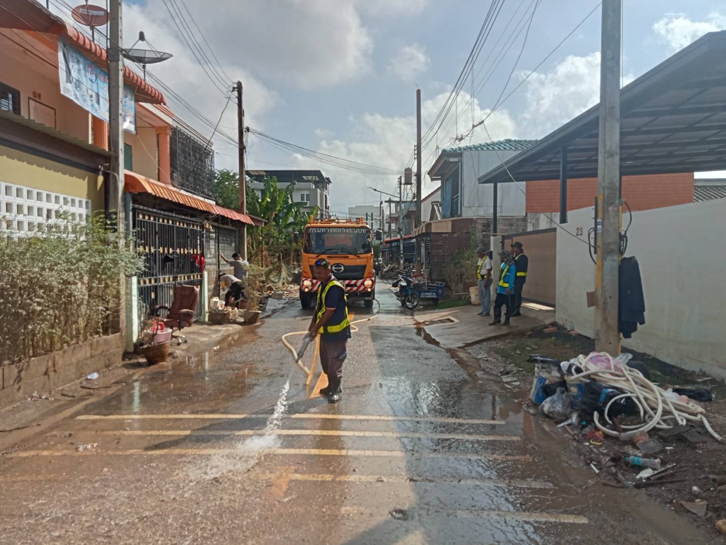 ซึ่งได้ทำการขนย้ายขยะรอบเมืองไปทิ้งแล้วเป็นจำนวนกว่า 400 เที่ยว พร้อมทั้งได้นำรถน้ำ 6 คัน รถบรรทุก 6 ล้อ 6 คัน รถบรรทุกเทท้าย 12 คัน รถตัก 4 คัน รถตักหน้าขุดหลัง 6 คัน รถบรรทุกลากจูง 2 คัน รถบรรทุก 4 ล้อ 4 คัน และเจ้าหน้าที่ 70 คน เข้าช่วยเหลือประชาชนอย่างเต็มกำลัง