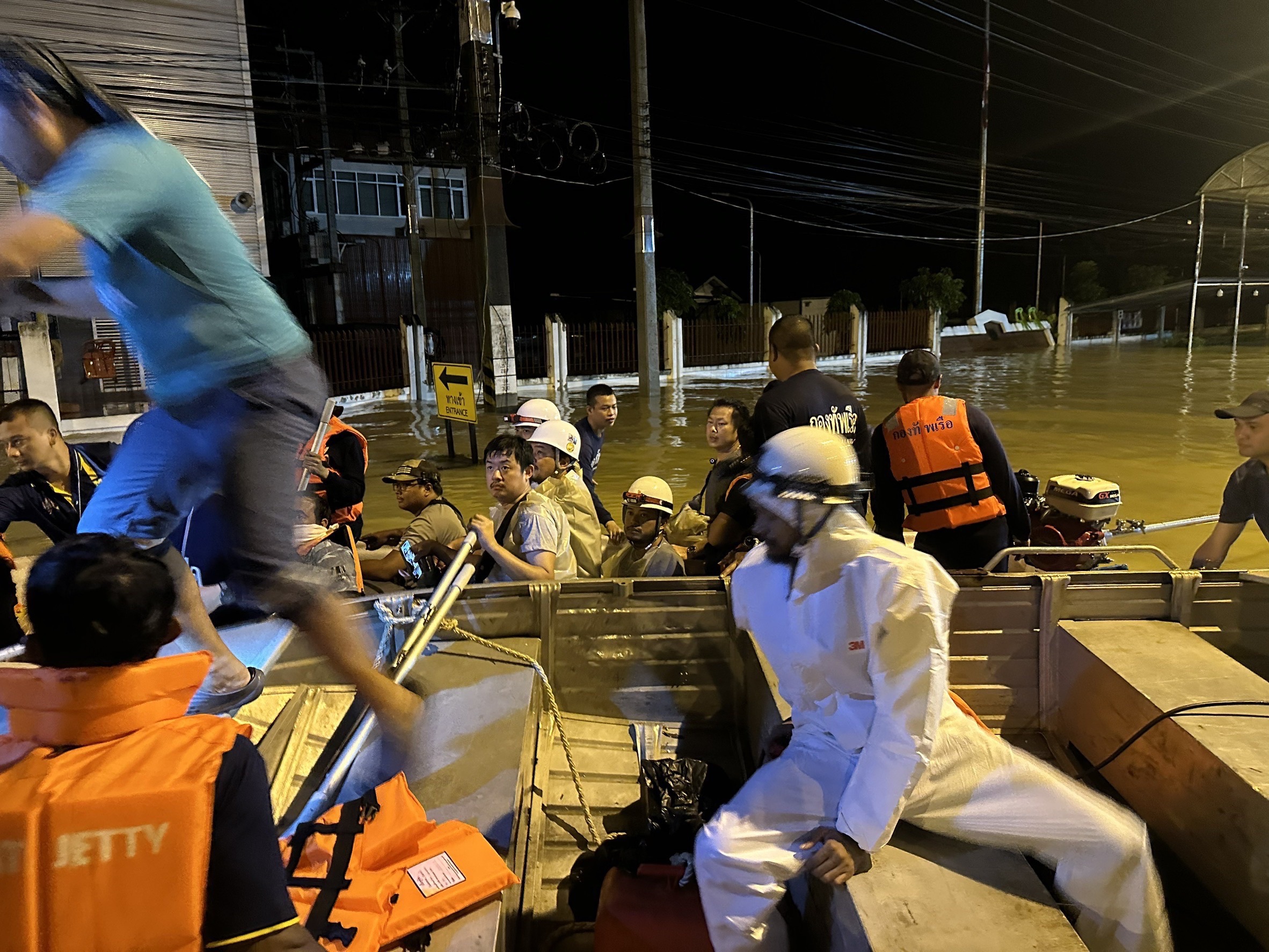 นายนรินทร์ เผ่าวณิช ผู้ว่าการการไฟฟ้าฝ่ายผลิตแห่งประเทศไทย (กฟผ.) เปิดเผยว่า กฟผ. เปิดวอร์รูมเร่งดำเนินการเข้าช่วยเหลือผู้ประสบอุทกภัยในพื้นที่ภาคใต้ที่ได้รับผลกระทบจากน้ำท่วมสูงอย่างเต็มกำลัง ทั้งการช่วยเหลือผู้ปฏิบัติงาน กฟผ. ด้านการเดินเครื่องและบำรุงรักษา รวมถึงผู้ปฏิบัติงานด้านอื่น ๆ ที่ติดค้างอยู่อีก 57 คน ในพื้นที่โรงไฟฟ้าจะนะ จ.สงขลา พร้อมลำเลียงถุงยังชีพและน้ำดื่มเกือบ 30,000 ชุด กระจายไปยังประชาชนที่ประสบอุทกภัยใน จ.สงขลา สุราษฎร์ธานี นครศรีธรรมราช และยะลา