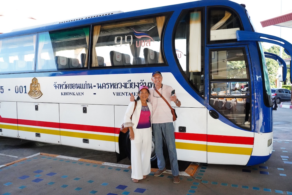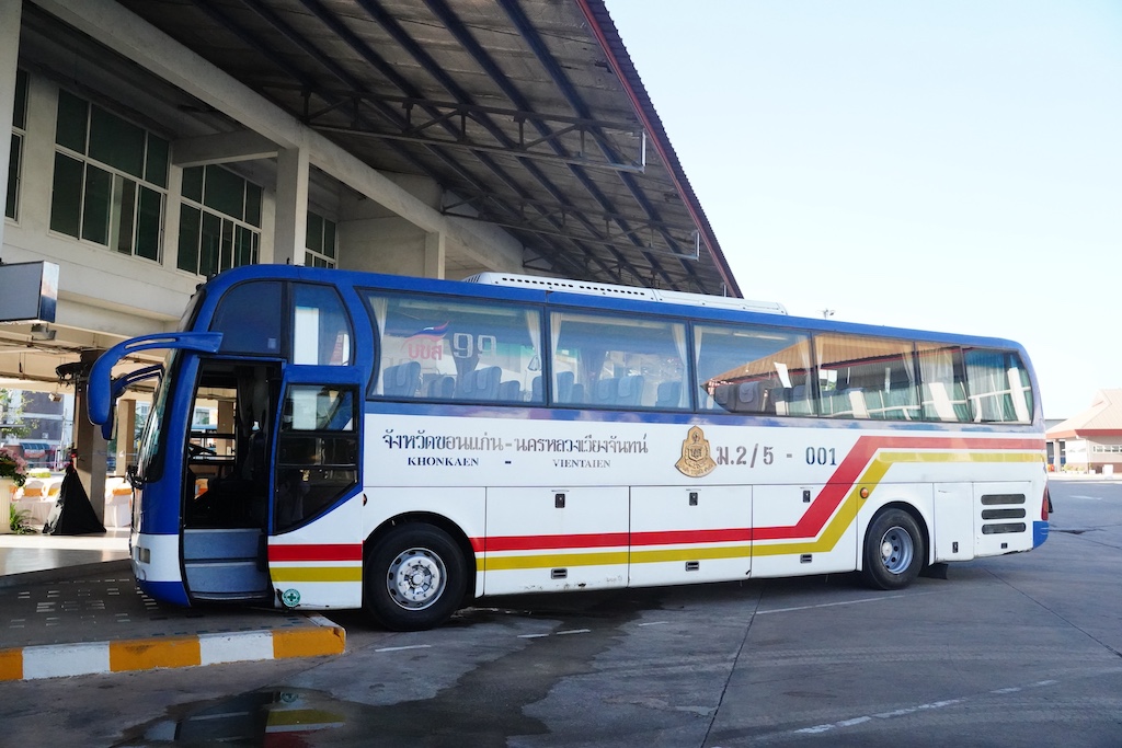 เส้นทางขอนแก่น – นครหลวงเวียงจันทน์ มีระยะทาง 194 กิโลเมตร ใช้เวลาเดินทาง 4 ชั่วโมง ค่าโดยสาร 180 บาท ใช้รถโดยสารปรับอากาศ จำนวน 42 ที่นั่ง ให้บริการวันละ 2 เที่ยววิ่ง (ไป – กลับ) เที่ยวไปรถออกจากขอนแก่น เวลา 08.15 น. ส่วนเที่ยวกลับรถออกจากนครหลวงเวียงจันทน์ เวลา 14.45 น.
