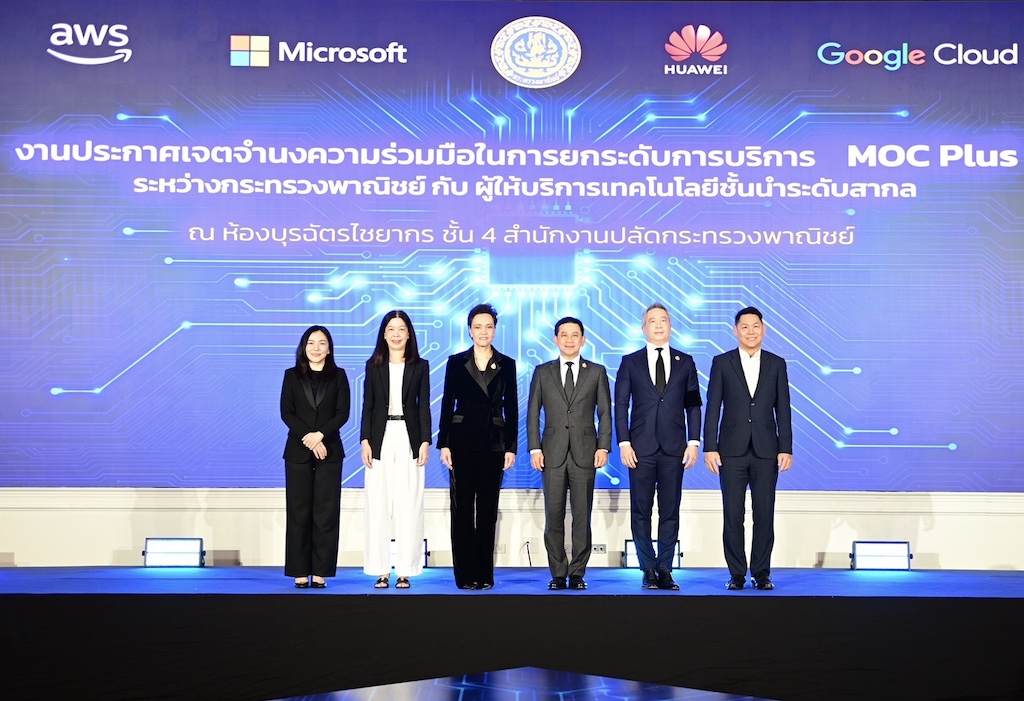 ทั้งนี้เป็นการประกาศเจตจำนงความร่วมมือ ระหว่างกระทรวงพาณิชย์และพันธมิตรเทคโนโลยีระดับโลก ได้แก่ Huawei, Google, Amazon Web Services และ Microsoft ในการสนับสนุนโครงสร้างพื้นฐานด้าน AI และ Cloud เพื่อพัฒนา MOC Plus ให้ก้าวสู่การเป็นแพลตฟอร์มรัฐบาลดิจิทัลที่สมบูรณ์